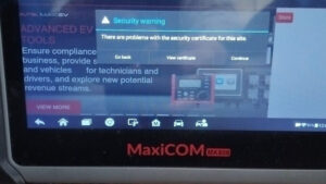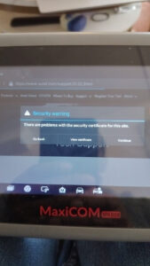 Si votre Autel MaxiCOM MK808 affiche l’avertissement de sécurité « Il y a des problèmes avec le certificat de sécurité de ce site » ou l’erreur « Si vous rencontrez des difficultés pour accéder à la recherche Google, veuillez cliquer ici » lors du diagnostic de véhicules et de la recherche de codes d’erreur, cela est probablement dû à un navigateur système obsolète.
